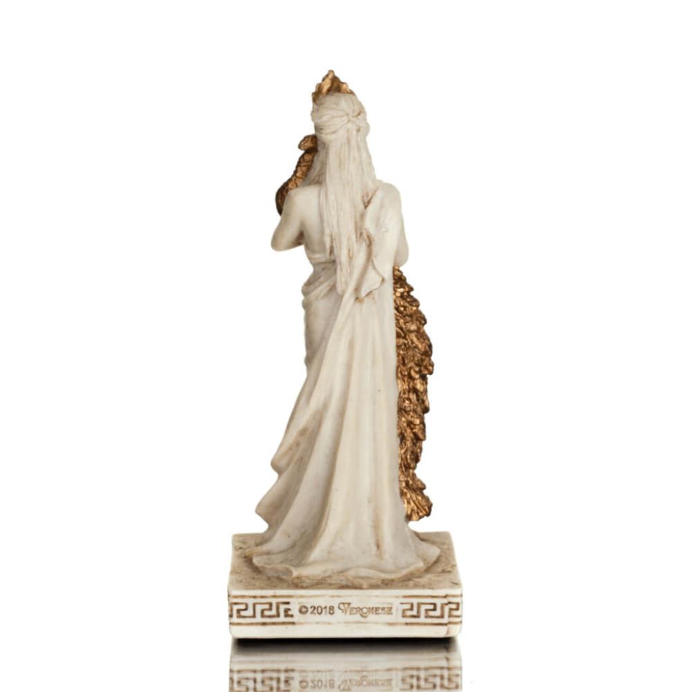 Το άγαλμα της Ήρας, λευκό με χρυσές λεπτομέρειες, προσφέρει μια αίσθηση κομψότητας, αρμονίας και αρχαιότητας στον χώρο του.